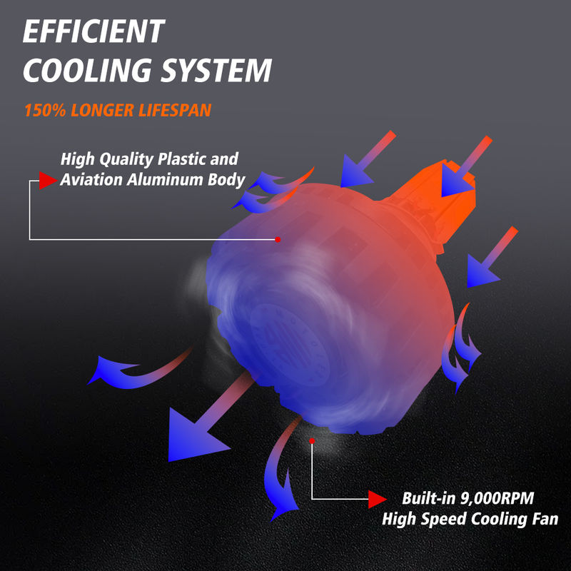 ventilador silencioso de alta velocidade com 9.000RPM e design de barbatanas da concha formou um sistema de resfriamento eficaz, IP67 à prova d'água, Mais de 50,000